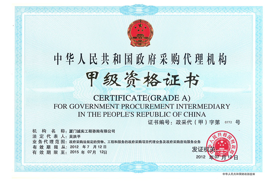 政府采購(gòu)招標(biāo)代理資質(zhì)正本